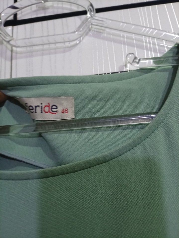 Yeşil renkli, uzun kesim hamile bluzu, yuvarlak yaka ve kolsuz yapıya sahiptir. Fermuarlı ve baskılı deseniyle günlük sokak stiline uygundur.