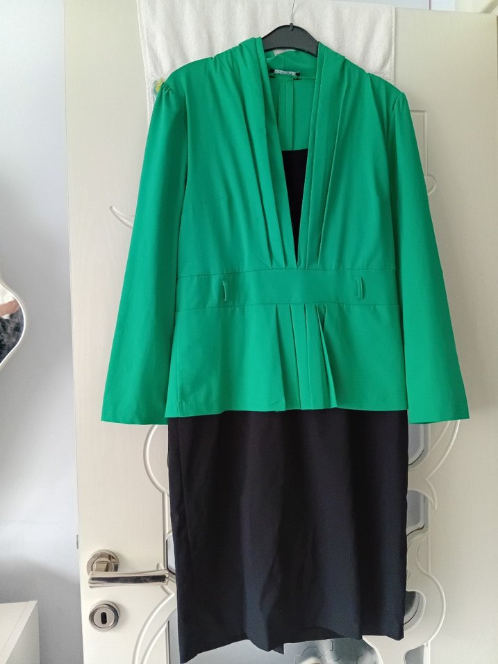 Uzun kesim yeşil siyah , kesik yakalı ve drapeli tasarıma sahiptir. Uzun kollu ve regular fit olup ofis kullanımı için uygundur.