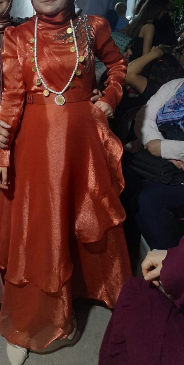 Uzun Kiremit rengi Kadın Abiye Elbise