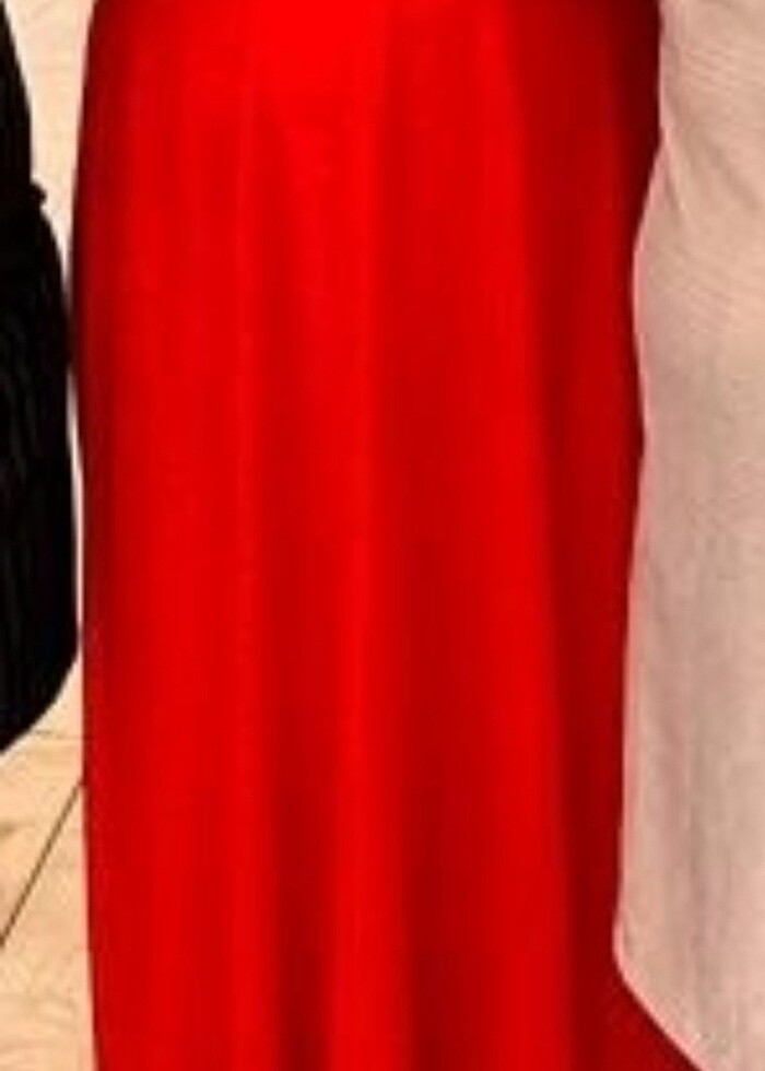 Kınam için aldım bir kez giydim esnek tül detaylı kırmızı abiye