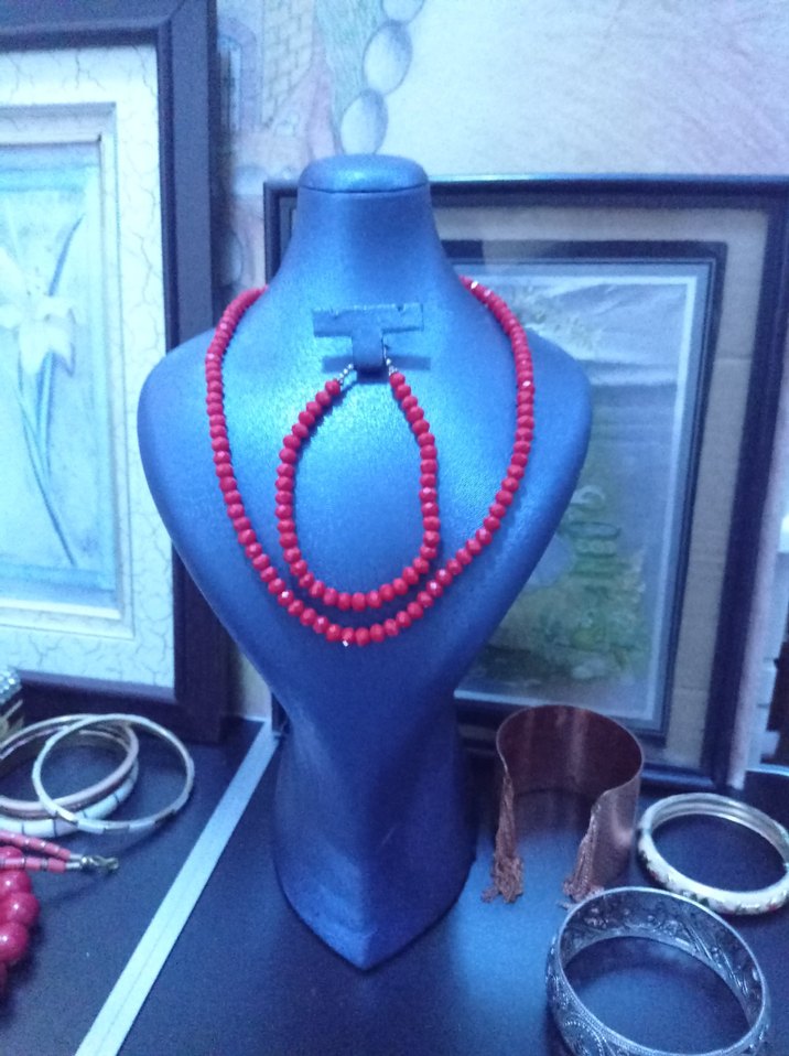 Uzun Kırmızı Boncuklu Kadın Kolye