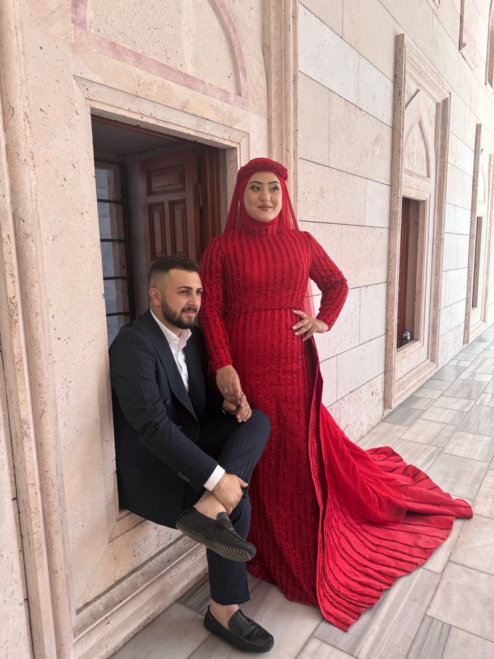 Uzun Kırmızı Tesettür Kına Elbisesi