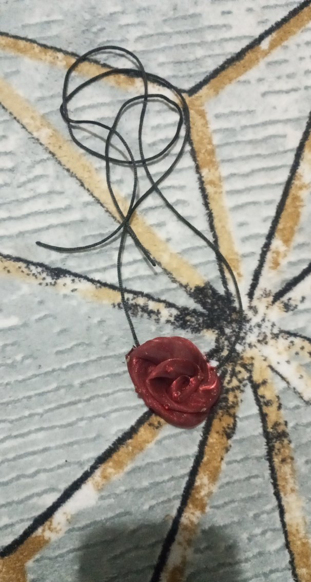 Uzun uzunlukta, zincir detaylı ve koyu kırmızı baskılı kolye, avangart tarzda romantik akşamlar için ideal.