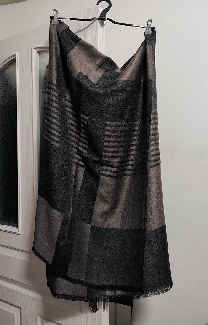 Uzun geometrik desenli kışlık bayan şal, yumuşak, dökümlü ve rahat dokusuyla modern ve şık bir görünüm sunar. 65-185cm. Hiç kullanılmadı. Yeni sahibine hayırlı olsun..