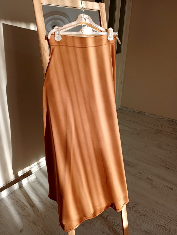 Nar çiçeği renkli, uzun ve salaş kesim saten kumaştan yapılmış, dökümlü siluete sahip bir etektir. Minimalist ve normcore tarzıyla günlük kullanıma uygundur.
