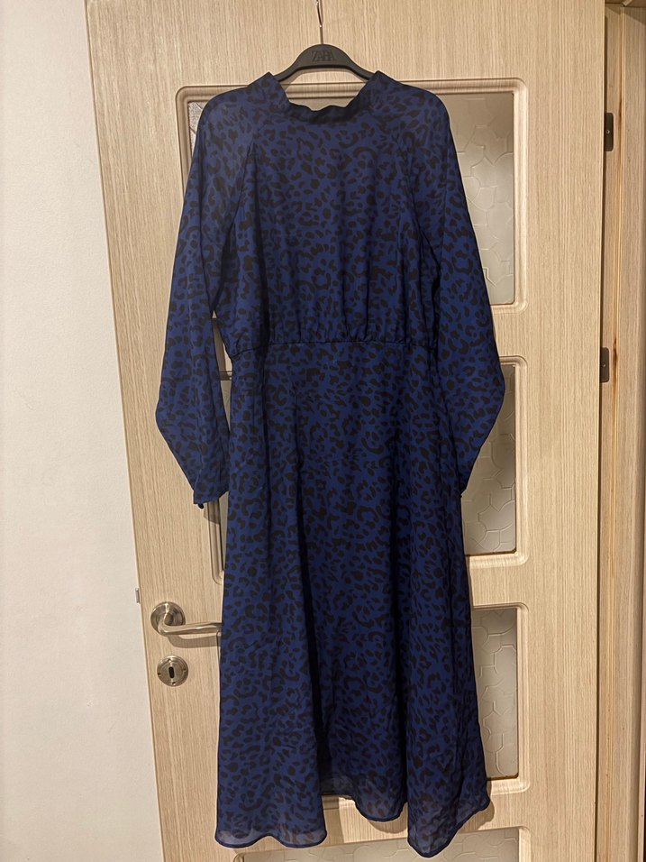 Uzun Kol Detaylı Lacivert Salaş Elbise