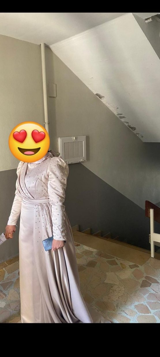 Uzun Kol Drapeli krem Sade Nişan Elbisesi