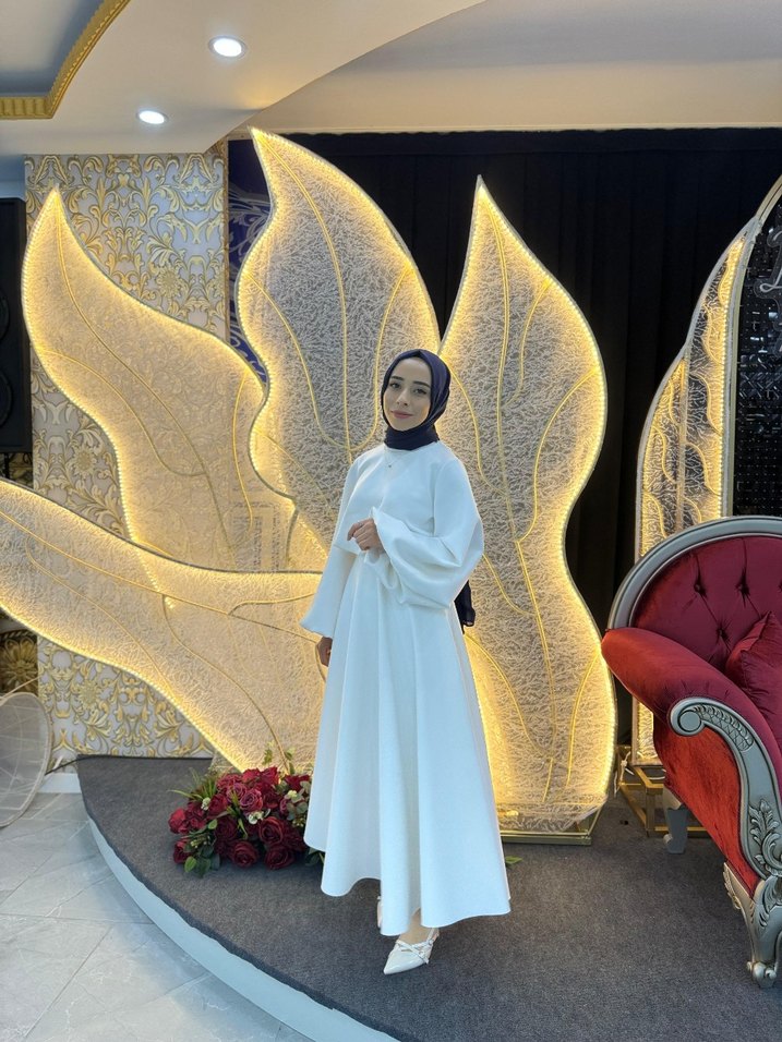Uzun Kol Drapeli Beyaz Tesettür etekli takım