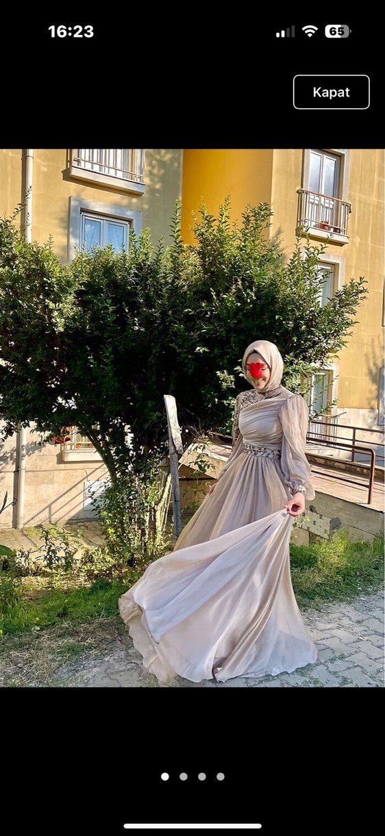 Uzun Kol Drapeli Bohem Gri Tesettür Abiye