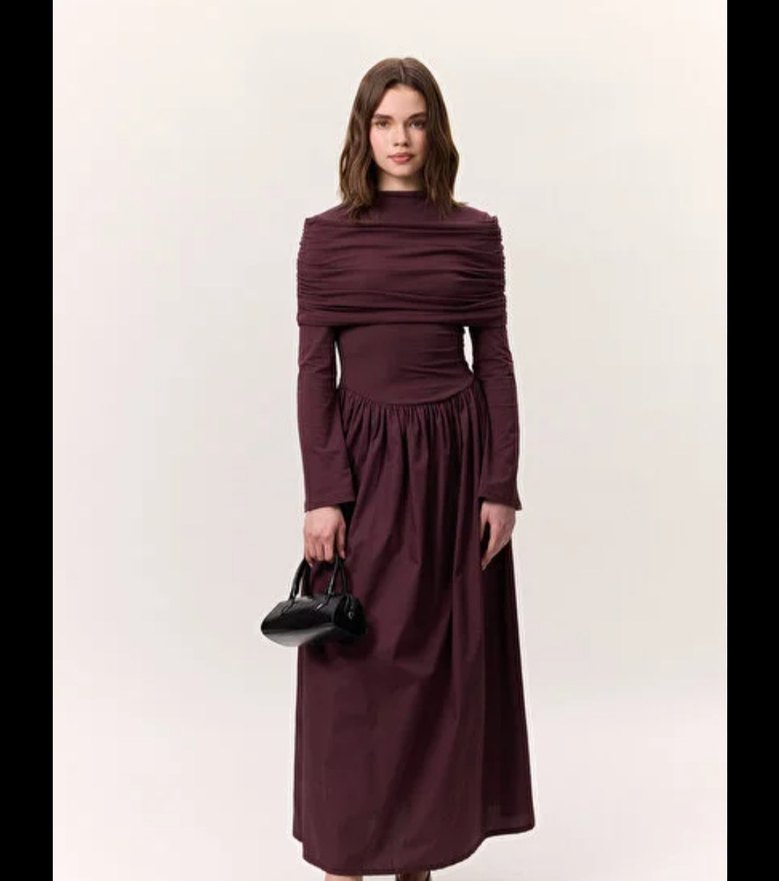 Drapeli bordo manuka elbise
