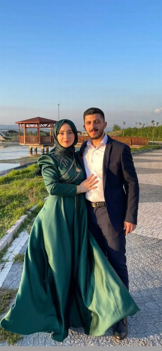Uzun kollu, haki renkli bu nişan elbisesi, sade etnik desenlerle drapeli ve klasik kesimlidir. Notch yaka ile mütevazı ve şık bir görünüm sunar.