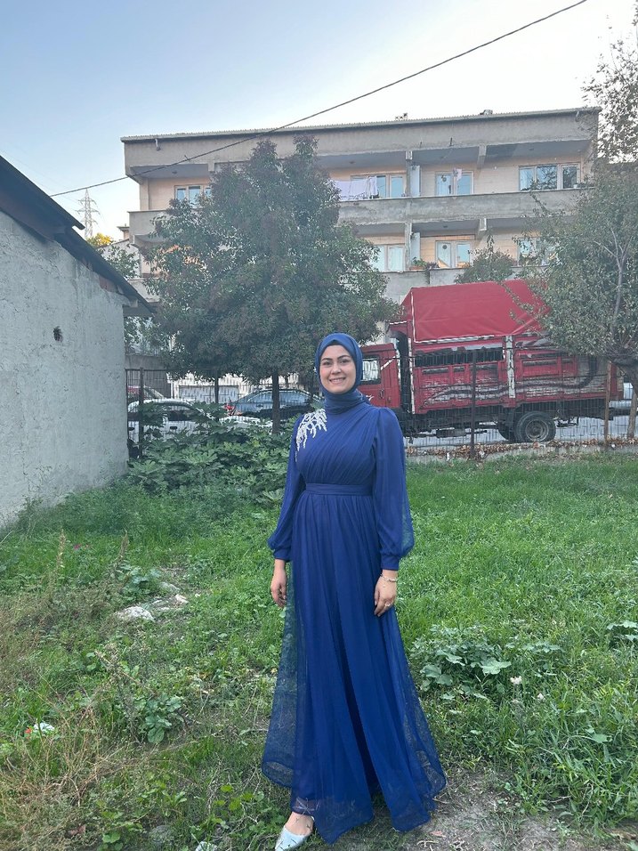 Uzun Kol Drapeli Lacivert Tesettür Elbise