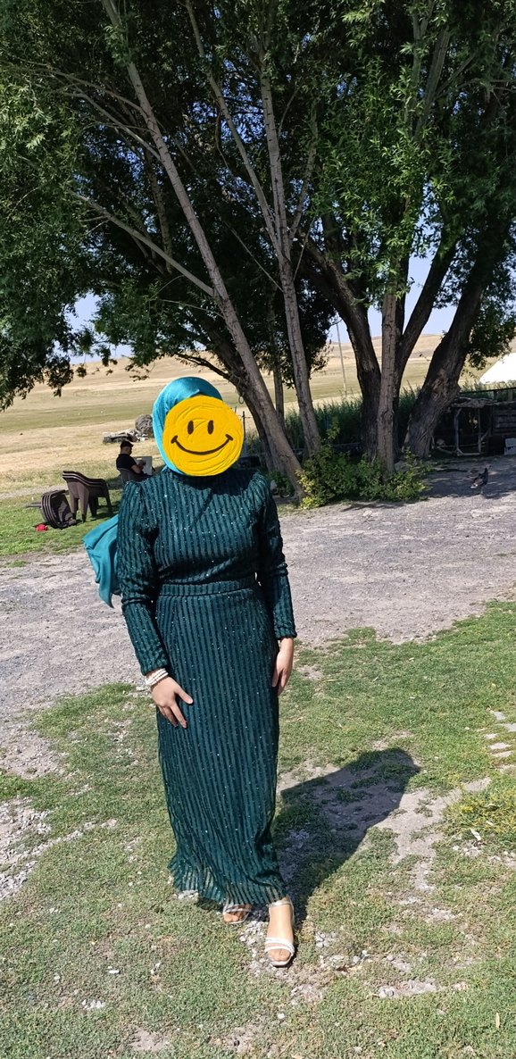 Uzun Kol Drapeli Yeşil Kadın Elbise sal fiyata dahildir