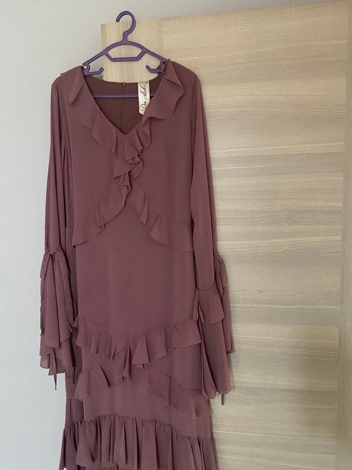 Uzun Kol Fırfırlı Bohem Elbise
