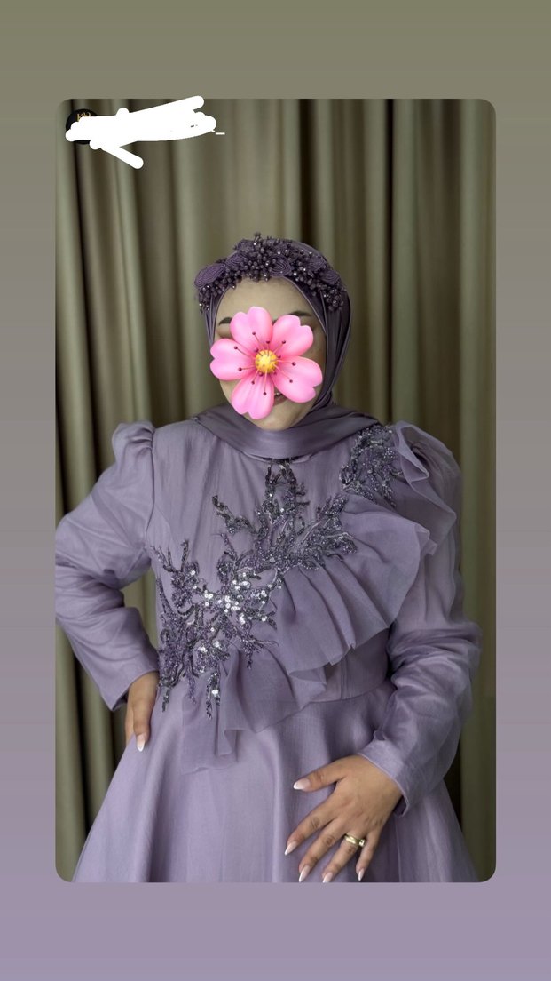 Uzun Kol, Fırfırlı Mor Tesettür Abiye