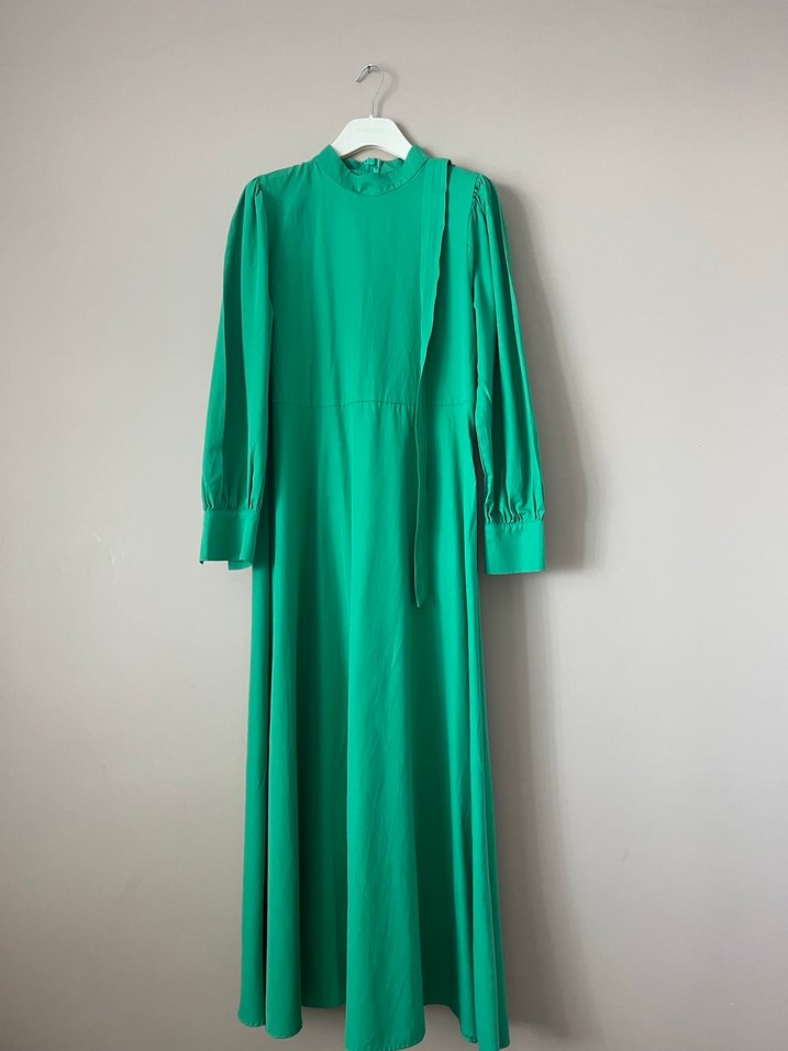 Uzun Kol kuşaklı Yeşil Elbise