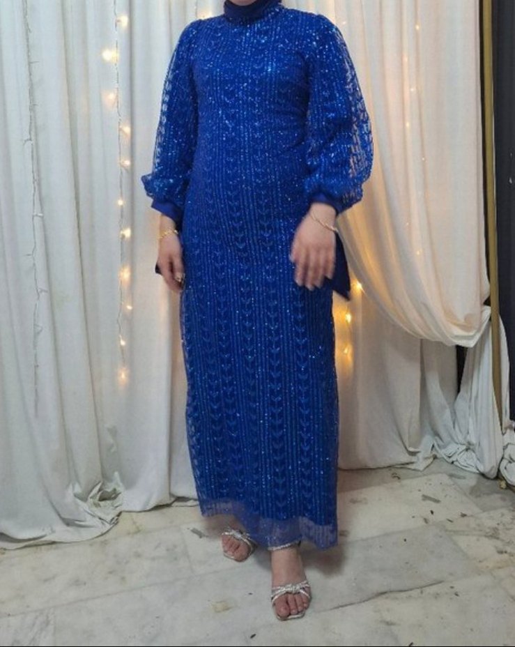 Uzun Kol, Mavi Kadın Abiye Elbise