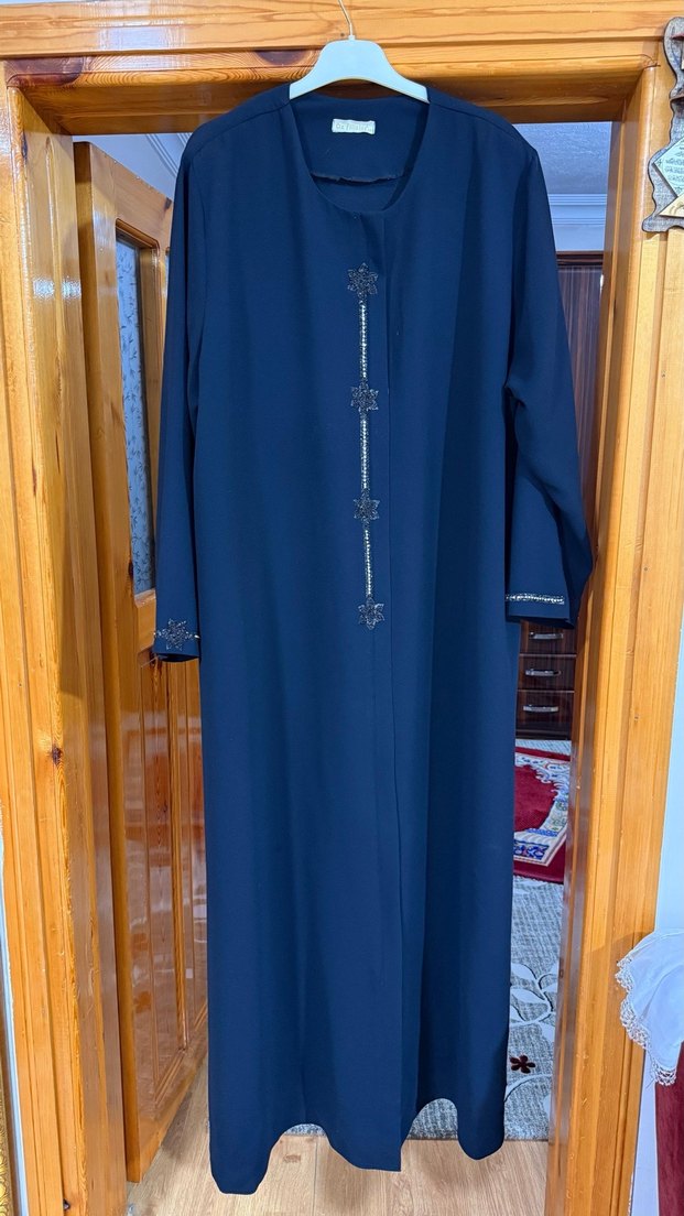 Uzun Kol Mavi Nakışlı Kadın ferace 56 beden