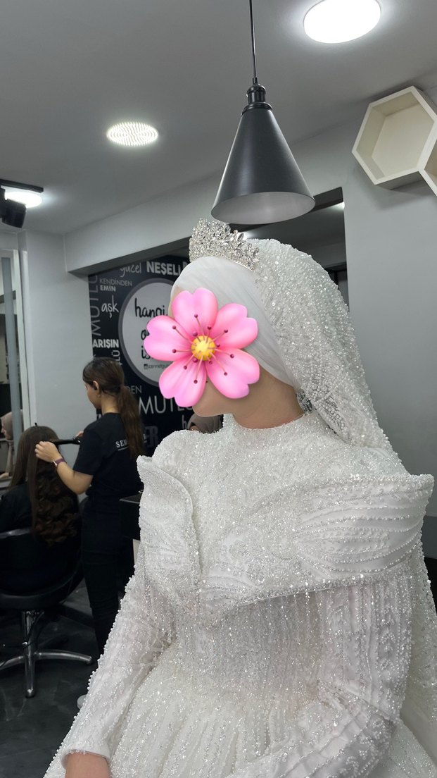 Uzun Kol Prenses Gelinlik Beyaz Yüksek Yaka