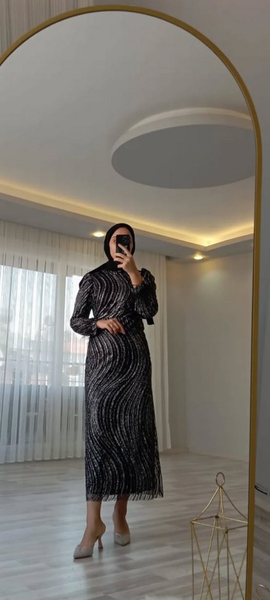 Uzun Kol Siyah Drapeli Ofis Elbisesi Satılıktır