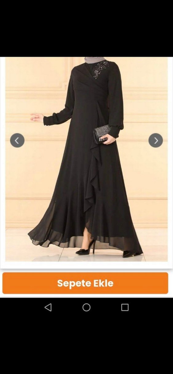 Uzun Kol Siyah İşlemeli Abiye Elbise
