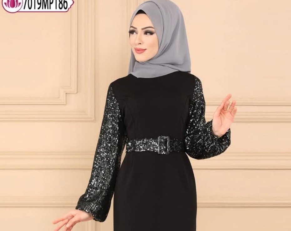 Uzun Kol Siyah Kolları pullu kemeri pullu tunik