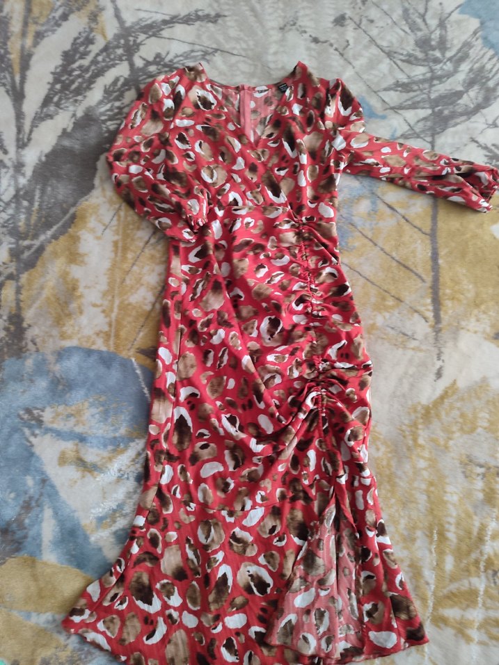 Bu uzun kol, V yakalı kırmızı elbise, renkli bağlamalı desen ve drapeli kesime sahiptir. Sokak ve bohem tarzlar için uygundur.