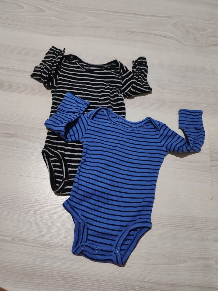 Uzun kollu, mavi çizgili, boğazlı ve elastik detaylı bebek body, renkli sokak stiliyle tasarlanmıştır.
