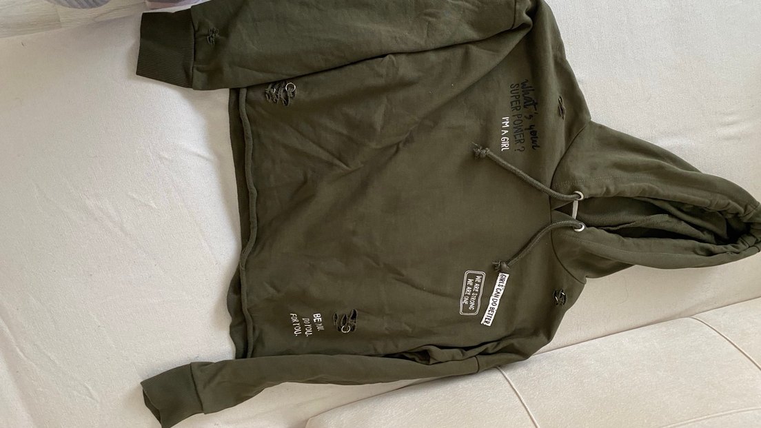 Khaki renkli, uzun kollu Baskılı detayları ve rahat dokusuyla günlük ve streetwear tarzına uygun midi uzunlukta.