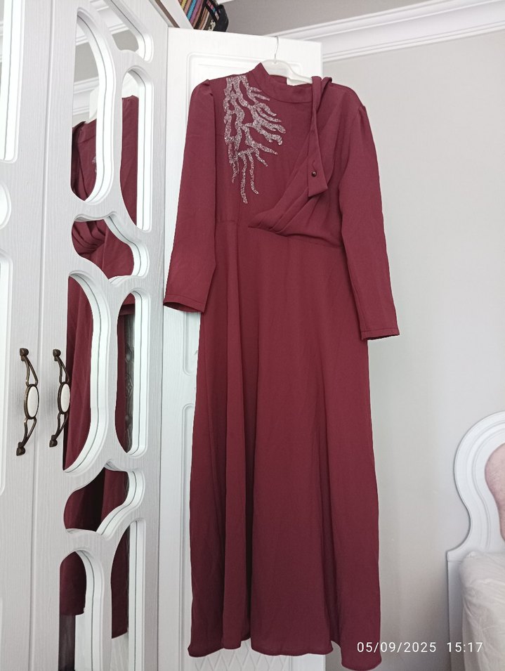 özel kesim 44 beden düğünlük abiye. kumaşı çok güzel. hiçbir sorunu yoktur sadece bir defa giyildi. kemeride mevcut. ürünün üstünde gözüküyor zaten