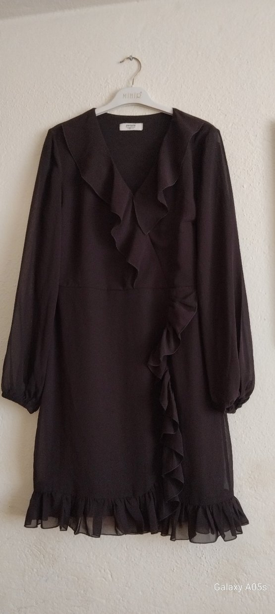 Uzun kollu ve bol kesim elbise, gotik Paris tarzını yansıtan fırfır detaylara sahiptir.