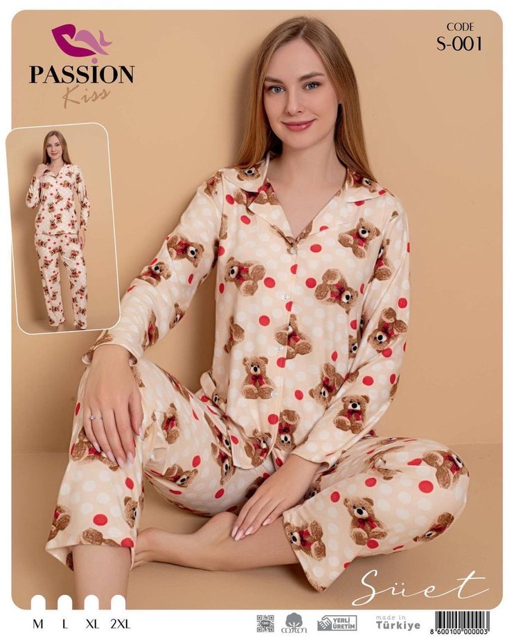 Uzun Kollu, Ayı Desenli Kadın Pijama Takımı