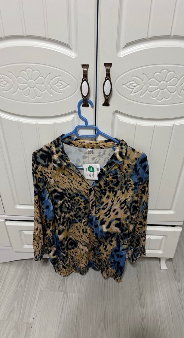 Kadınlar için uzun kollu, yakalı ve düğmeli mini gömlek. Bağlamalı desenli, bol kesim, koyu kahverengi tonlarında rahat günlük stil için uygun.