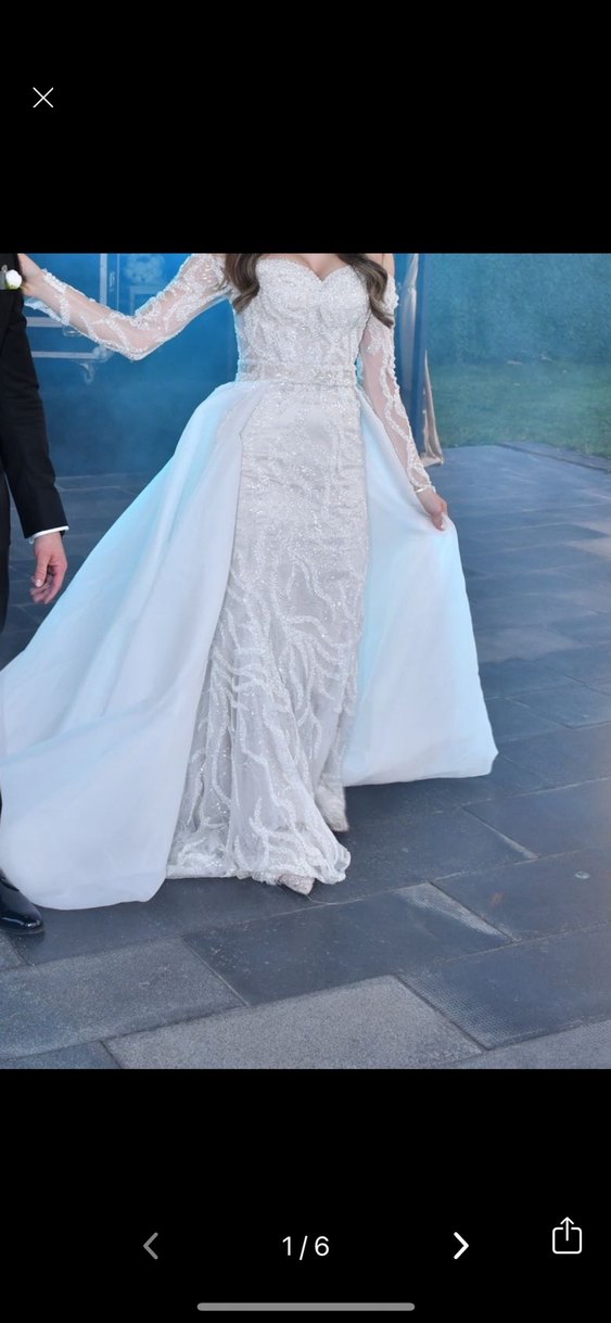 Ürünü özel diktirdim. Tasarımı ve her detayını tasarımcı ile beraber kararlaştırdık. 34-36 bedene uygundur. Arkası ipli olduğundan rahatlıkla bedene uydurulabilir. Demonte eteği mevcuttur. Eteği çıkartıp afterda kullandım. 1.68-58 kiloyla giydim. 6 cmde topuklu ayakkabı kullandım. İçindeki astar cappucino rengidir. Işıl ışıl parlayan icinde prenses gibi hissettiren bir gelinlik Ciddi alıcı için video ekleyebilirim. Ciddi alacaklar teklif yollasın lütfen Pazarlık payı vardı