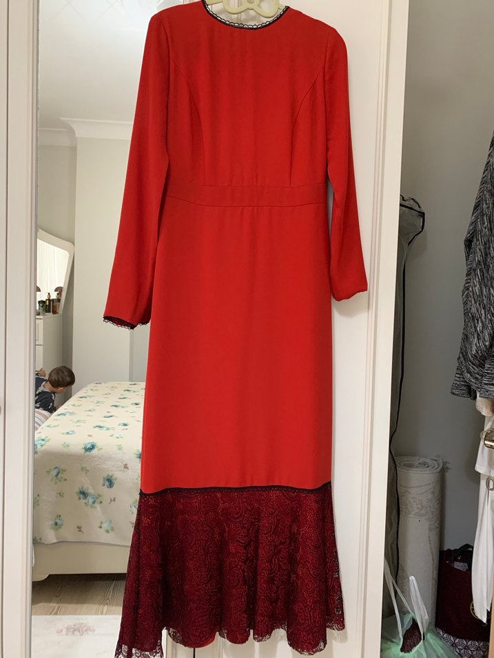 uzun kollu, balık kesim ve yuvarlak yakalı uzun elbise. dantel etek ucu vintage ve modern klasik tarzı birleştirir. ❤️