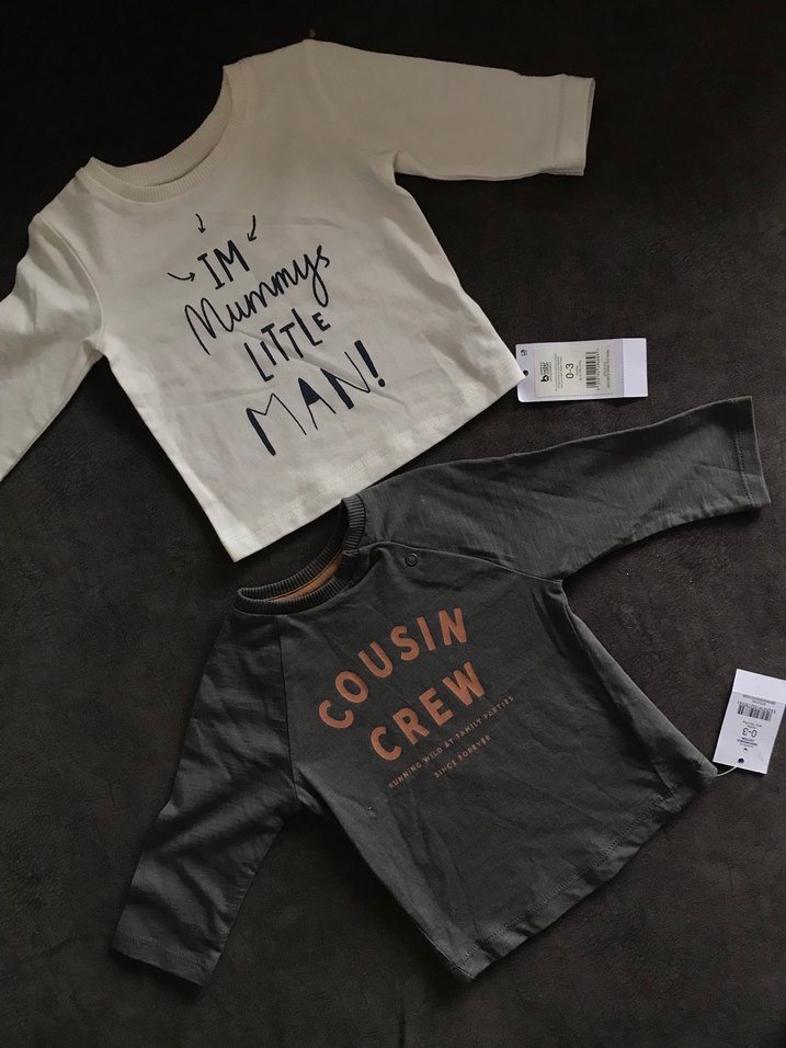 Pamuklu, uzun kollu, gri ve beyaz iki baskılı bebek erkek üstü, bisiklet yaka ve normcore tarzında.0-3 ay