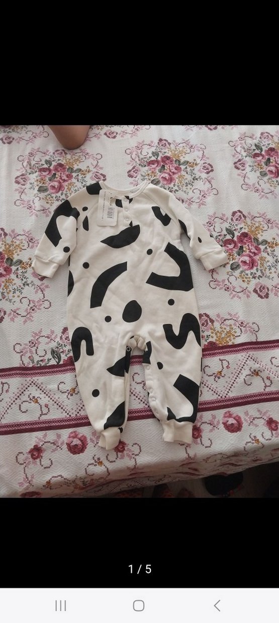 Beyaz renkli bebek tulumu, uzun kollu ve yuvarlak yakalıdır. Yumuşak ve sıcak kumaştan üretilmiş, düğmeli ve baskılı desen. hediye geldi sakladığım yerde boya bulaşmış bazı yerlerine yıkayınca cikar mi bilemiyorum ona göre alım yapiniz lütfen.