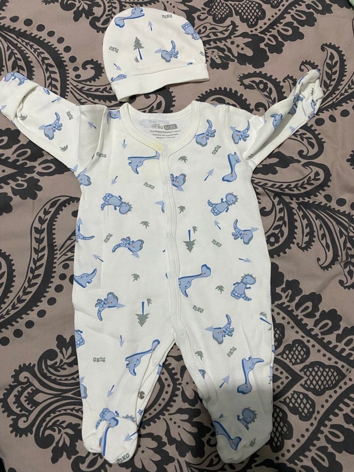 Uzun Kollu Baskılı Bebek Tulum ve Şapka