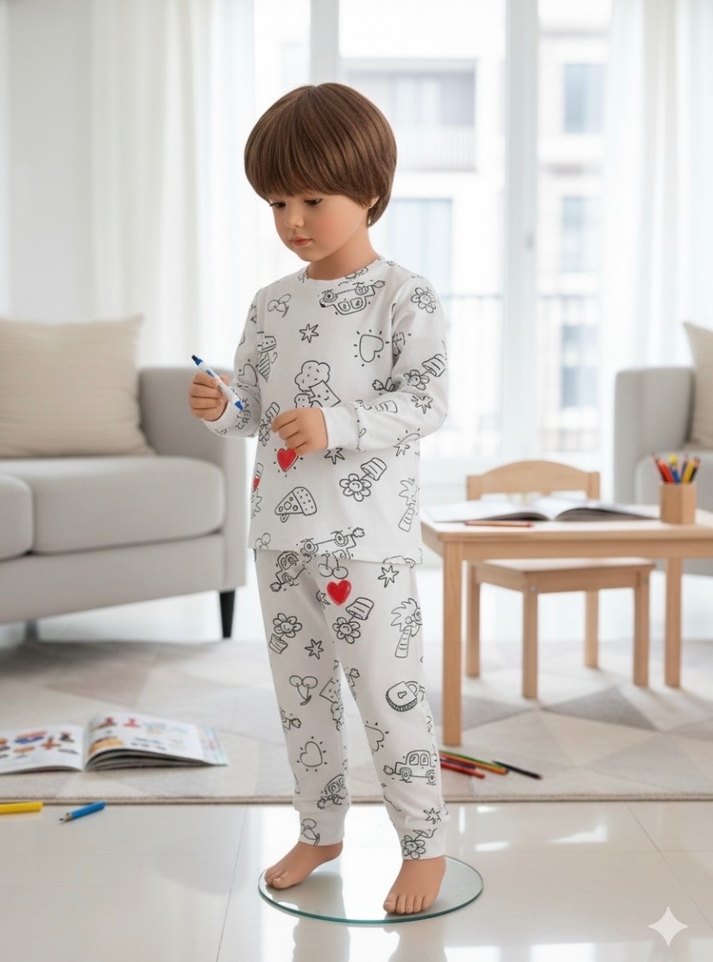 Uzun Kollu Baskılı Erkek Çocuk Pijaması