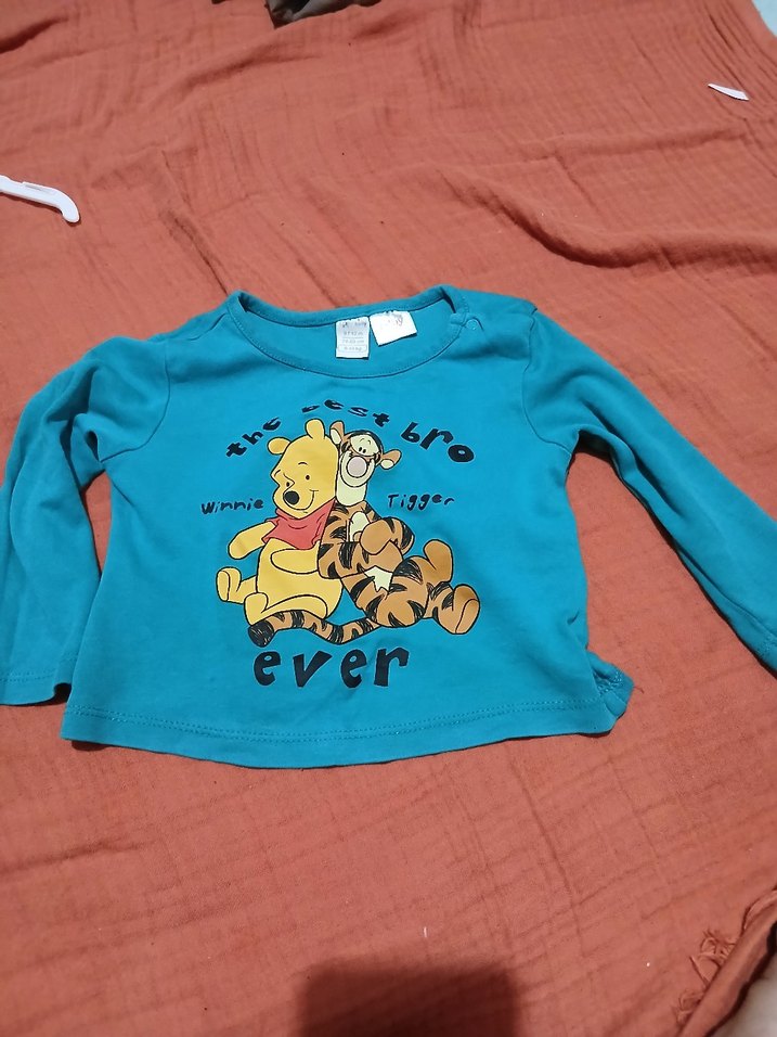 Mavi renkli, uzun kollu, bol kesim çocuk sweatshirtü. Winnie the Pooh ve Tigger baskılı, Velcro detaylı, yumuşak ve sıcak kumaştan üretilmiştir.