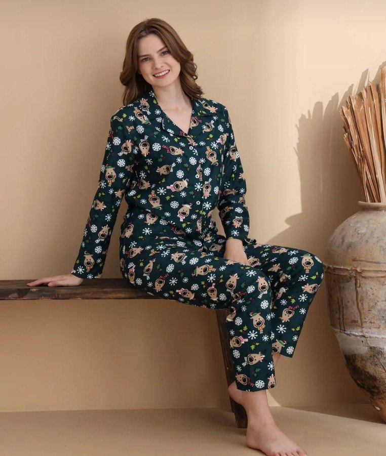 Uzun Kollu Baskılı Kadın Pijama Takımı