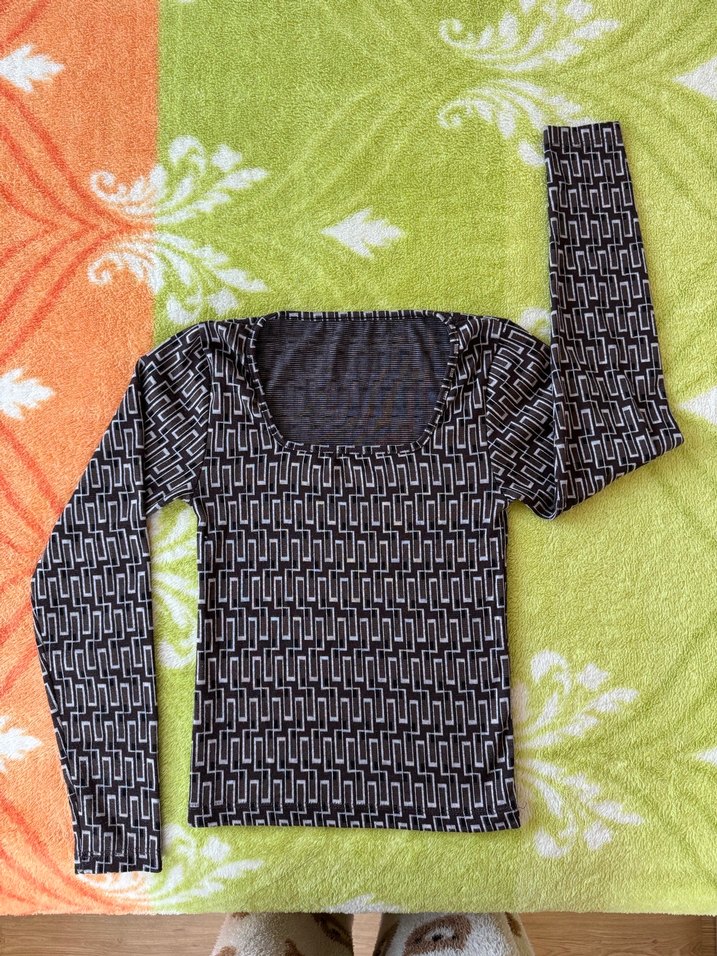 Uzun Kollu, Baskılı Koyu Gri Kadın Bluz