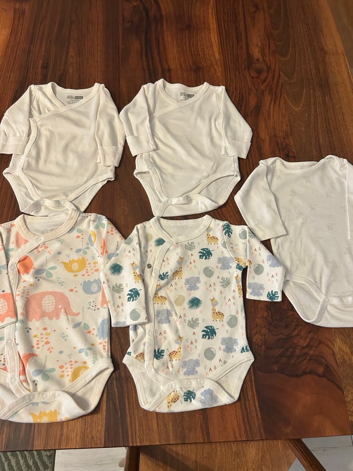 Beşlidir dört tane önden çıtçıtlı olanlar hello baby markadır diğeri butik ürünüdür yeşil çıtçıtlı olan yenidoğandır geri kalanları 3 ay için uygundur yepyenidir tertemizdir indirim yoktur zaten ucuza koydum
