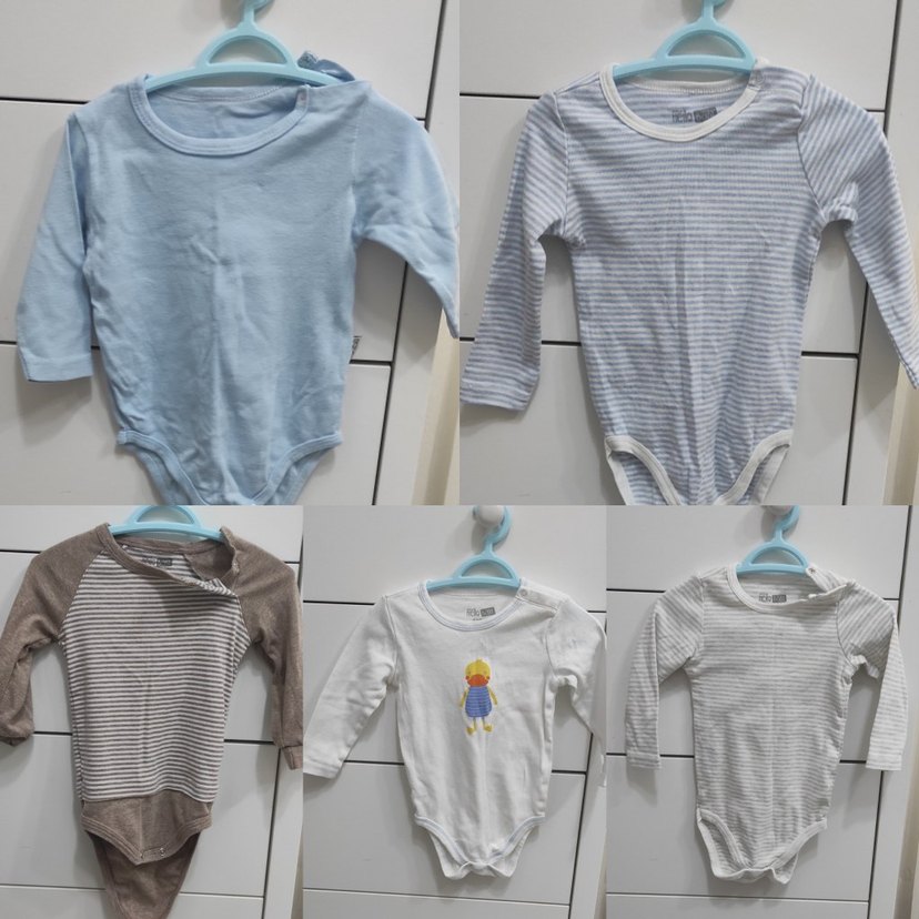 Pamuklu uzun kollu bebek body seti, mavi ve çizgili desenlerde, yuvarlak yaka ve rahat bir kullanım sağlar. Yumuşak kumaşıyla şık ve konforludur.