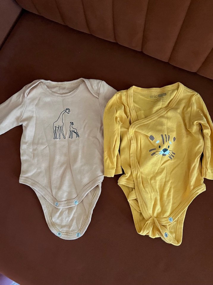Pamuklu, uzun kollu bebek bodyleri, pastel sarı ve bej renklerde, hayvan işlemeleri ve çıtçıtlı tasarımlarla konfor sağlar. İkisi 100 TL