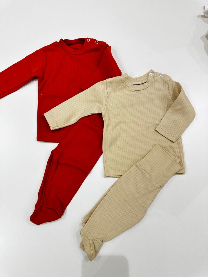 Uzun kollu, kiremit rengi ve bej renkte iki parçadan oluşan bebek kız takımı. Hiç giyilmedi yıkayıp kaldırılmıştı bebeğimin ayına göre uygun olmadı mevsimi