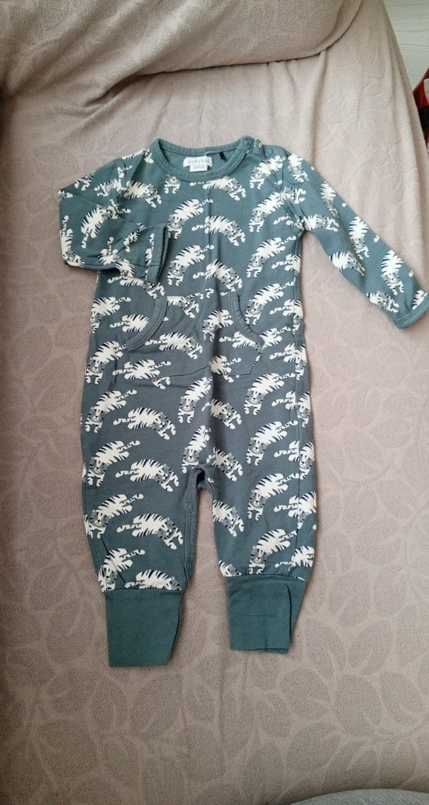 Yumuşak ve sıcak kumaştan, uzun kollu ve bisiklet yaka gri tonlarda bebek tulumu.