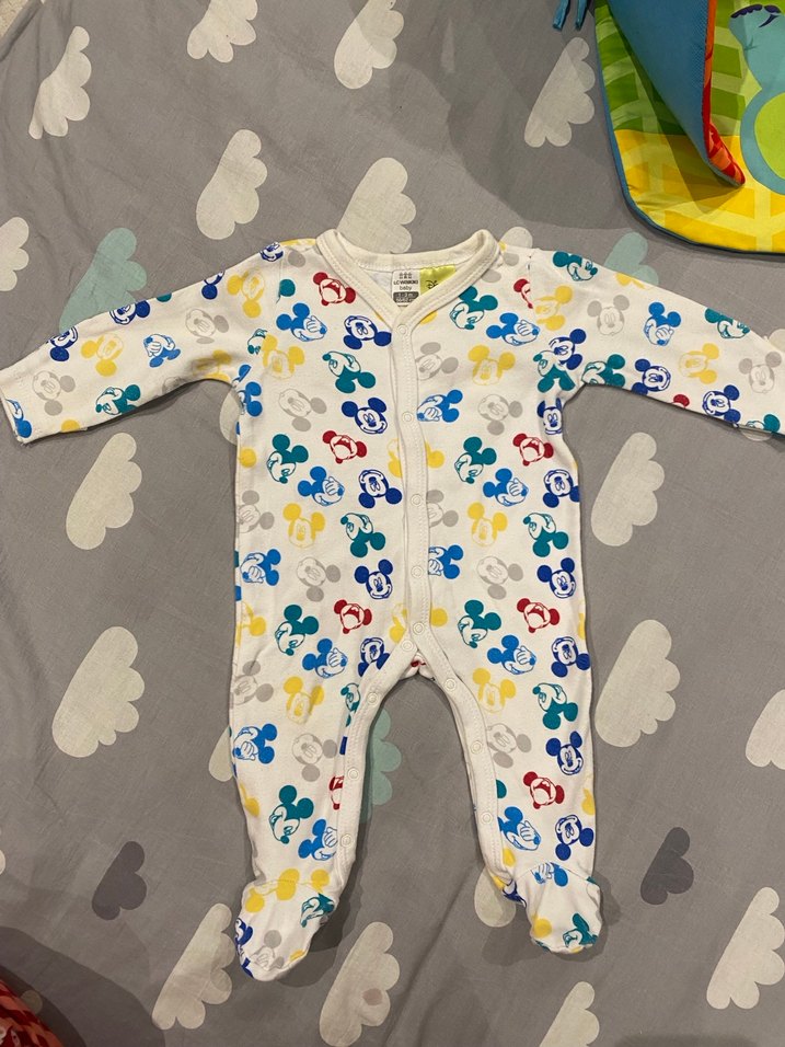 Renkli baskılı, uzun kollu, düğmeli, yumuşak ve sıcak kumaştan yapılmış bebek tulumu. Rahat ve kullanışlıdır.