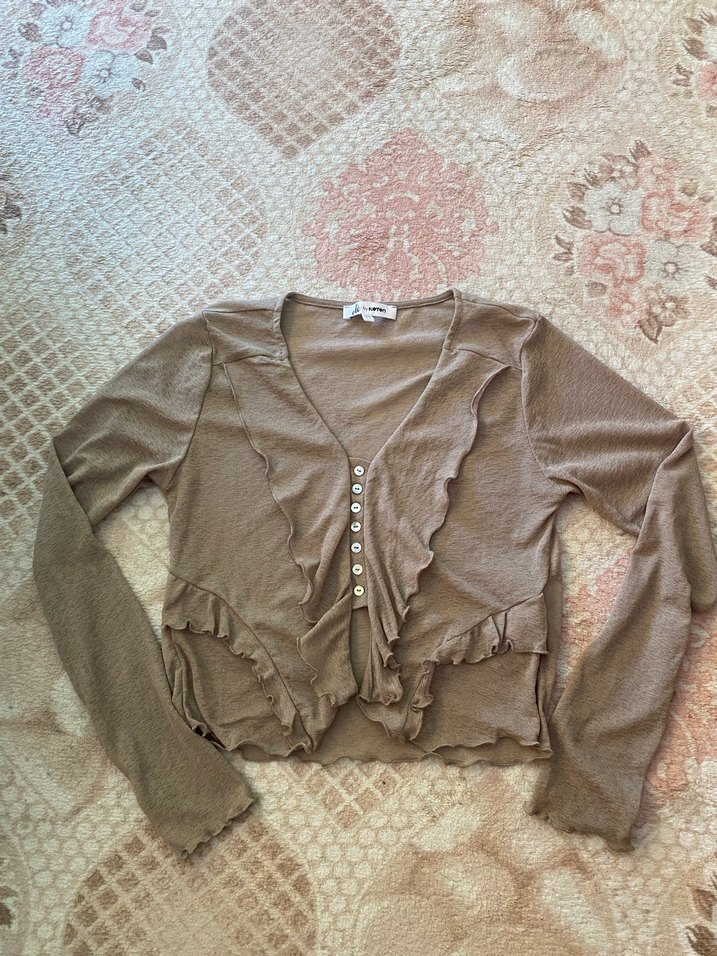 Bir kusuru yok, kumaşı tül #tül #bluz #üst #tshirt #kadın #giyim #bej #krem #koton #sweatshirt