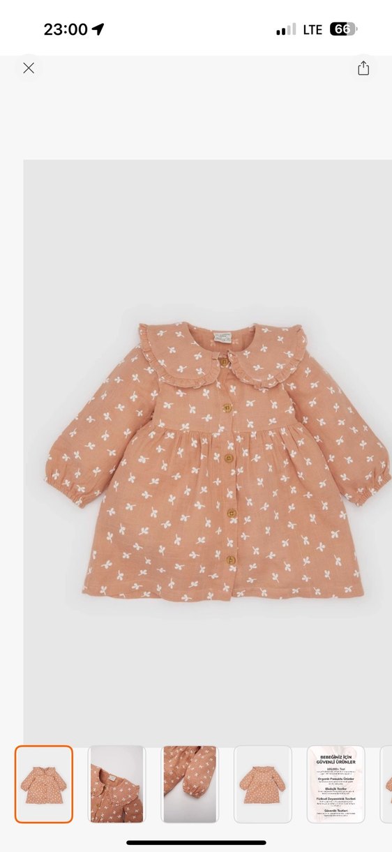 Yumuşak ve sıcak kumaştan, düğmeli ve uzun kollu, yakalı, bol kesim kız çocuk elbisesi. Pastel tonlarda bohem tarzda desenli.